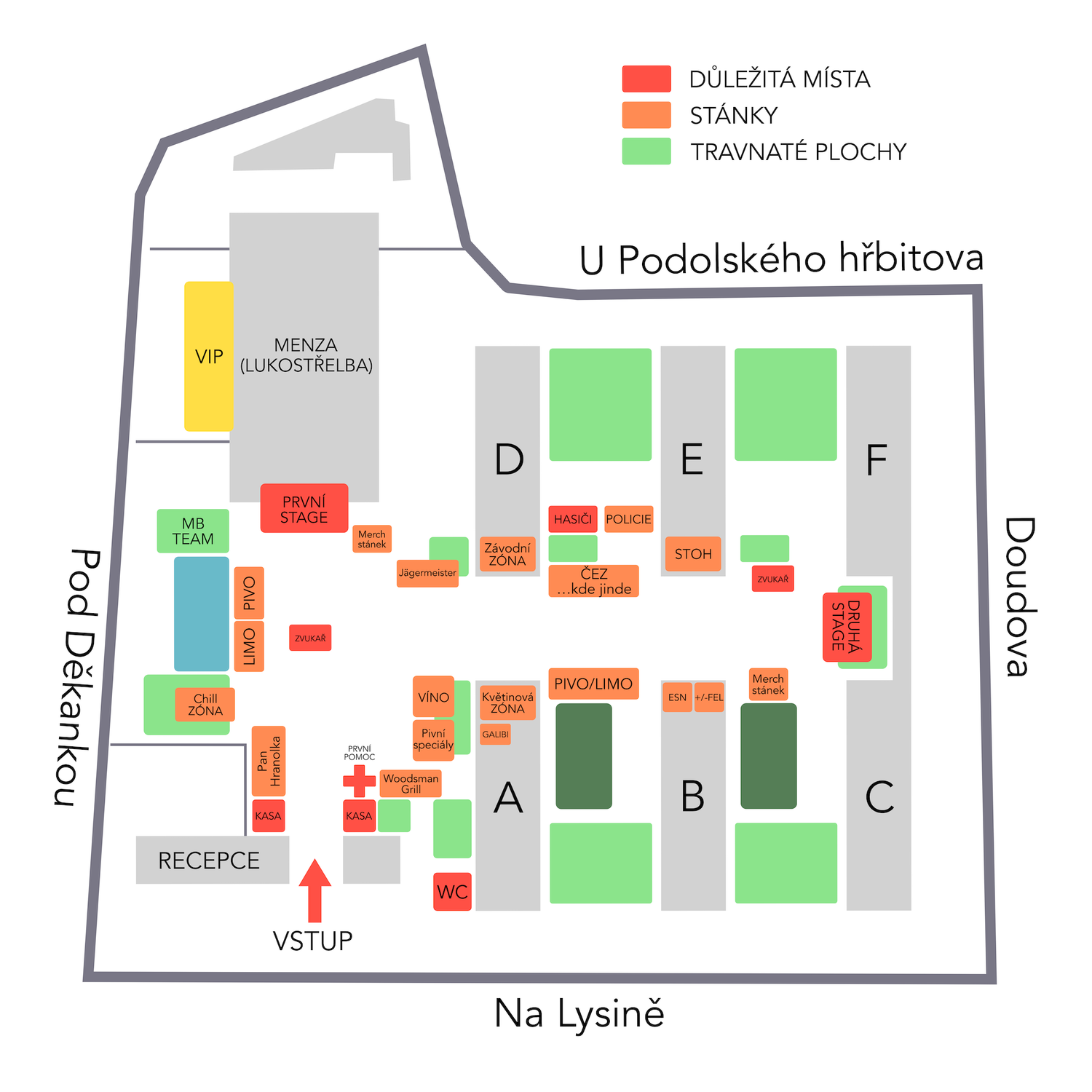 Festival Mezi Bloky se koná v areálu kolejí ČVUT v Podolí. Níže najdeš všechno, co potřebuješ vědět o platbách a orientaci v areálu.
